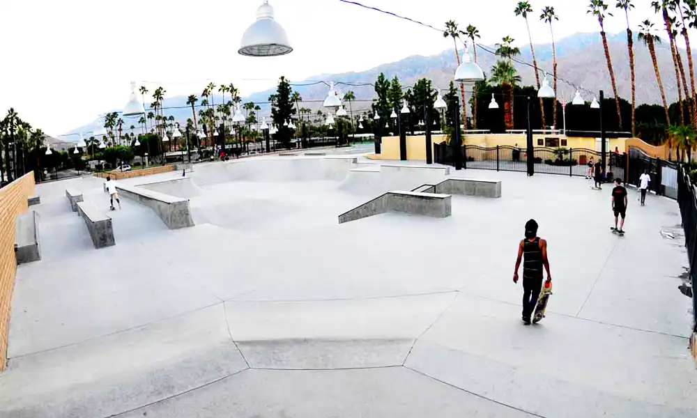 Palm Springs Skatepark has a huge surface made for skateboarders and in-line skating.