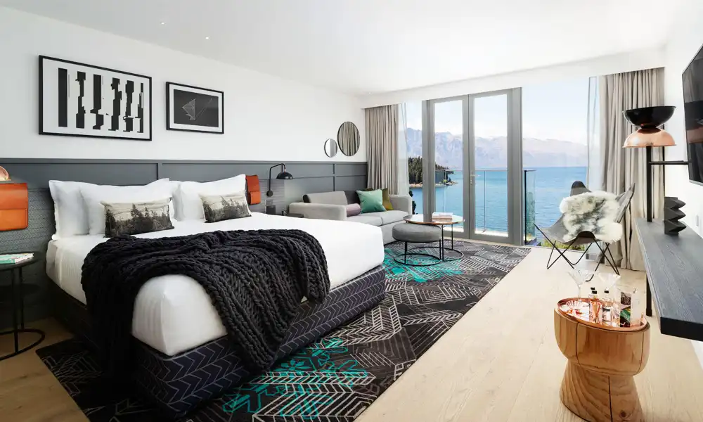 The abundance of Kiwi art, large balconies, and rich textures make this one of the best boutique hotels in Queenstown.