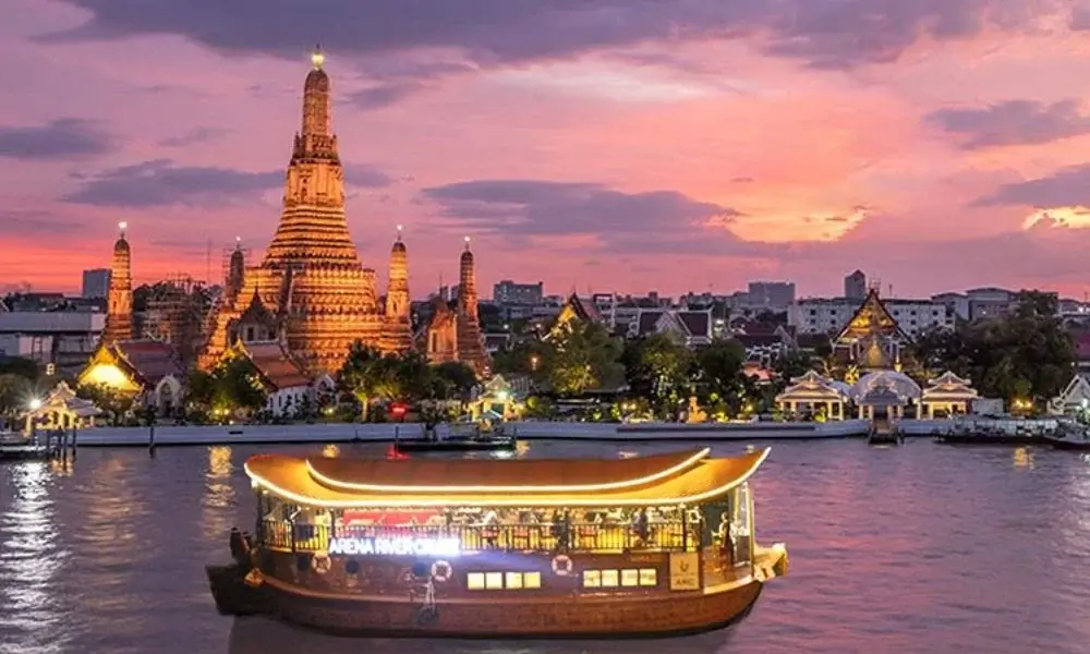 You can enhance the cruise experience by booking a nighttime trip. Then, you can enjoy a full-on dinner cruise service right on the Chao Phraya River. The cuisine is local and very tasty, with the illuminated buildings as a majestic backdrop.