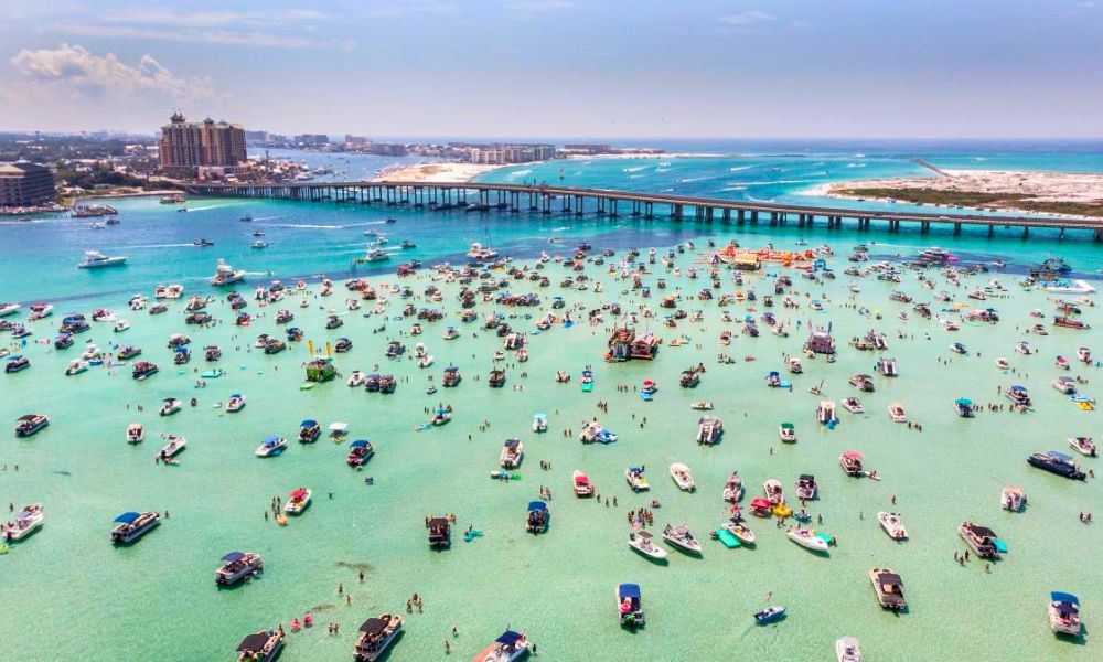 No trip to Destin would be complete without a visit to the famous Crab Island, a submerged sandbar located just north of the Destin Bridge. Accessible only by boat, this unique destination offers shallow waters, typically ranging from 1 to 4 feet deep, making it a perfect playground for families with young children. Here, you’ll find a lively social scene where locals and tourists gather to enjoy the Florida sunshine. Many visitors anchor their boats and partake in various water activities, and you might even spot floating restaurants and vendors offering drinks and snacks. Given its popularity , it’s crucial to plan your visit, as it’s accessible only by boat. Consider family-friendly pontoon rentals or guided boat tours to ensure a safe and enjoyable experience.